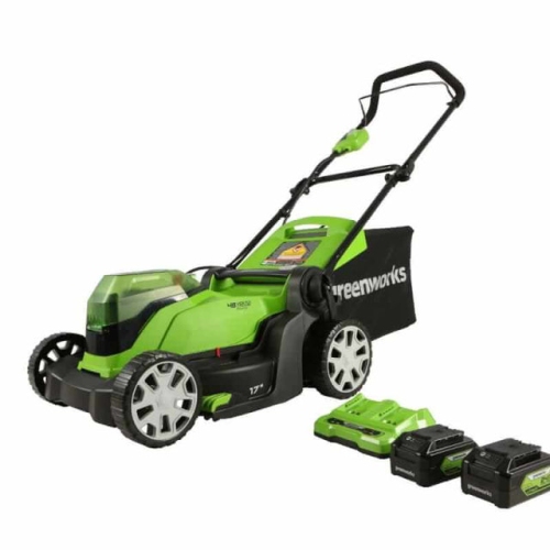 Welcome to a Life. Powered. by Greenworks. The 24V PowerAll™ system powers 200+ tools, providing 20% more power and 35% more run-time. The Greenworks 48V 17" lawnmower includes 2 x 24V 4Ah batteries, 6 cutting heights, and folding handles. Enjoy no fumes, mixing, or maintenance, and a 3-year warranty for peace of mind. Let Greenworks make yard work easier.
