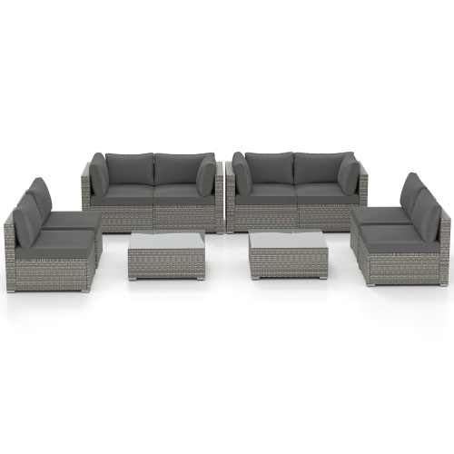 Gymax 10PCS Sectional Sofa Couch PE Rattan Conversation Set