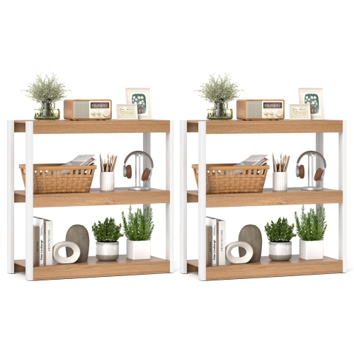 Gymax 2 PCS 3 Tier Bookshelf Wooden Bookcase w/ Dual Anti-Tipping Kits Open Shelving Unit Natural & White