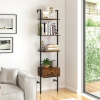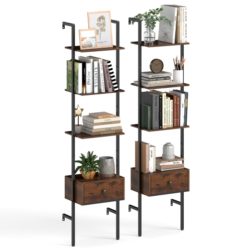 Gymax 2 PCS 5-Tier Bookshelf w/ Drawer 70'' Wall Mount Ladder Bookcase w/ Metal Frame