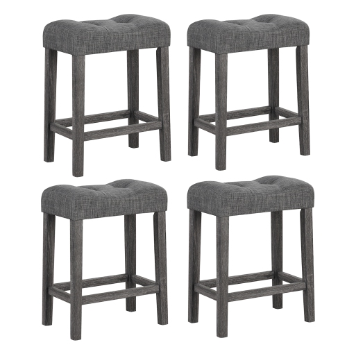 Gymax 24'' Saddle Bar Stools Set of 4 w/ Footrest Rubber Wood Frame for Kitchen Island
