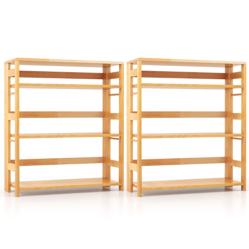 Gymax 2PCS 4-Tier Bookshelf Floor Storage Shelf w/ Rubber Wood Frame Anti-Toppling Kits