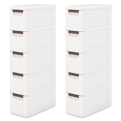 Gymax 2PCS 5-Drawer Narrow Rolling Storage Cabinet w/ Pull Handles Built-in Wheels