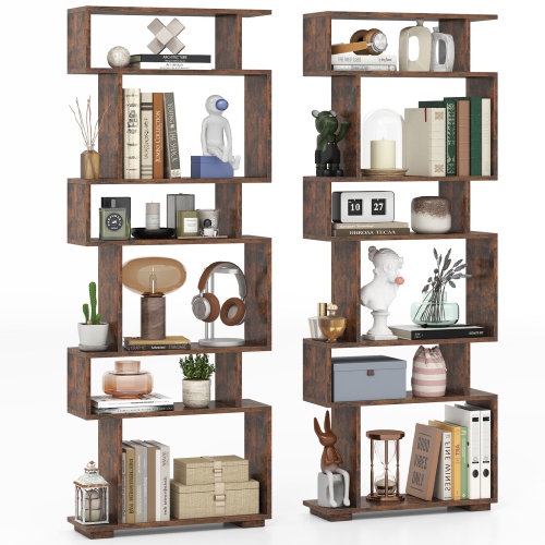 Gymax 2PCS 6-tier Storage Bookshelf Tall Display Shelf w/ Anti-toppling Kits Kits