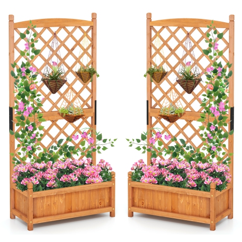 Gymax 2PCS 60'' Tall Raised Garden Bed w/Diamond Lattice Trellis Drainage Holes Outdoor
