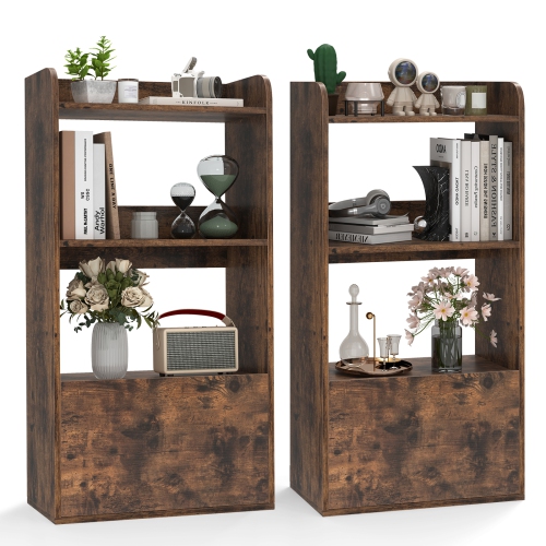 Gymax 2PCS Bookcase w/ Drawer 3-Tier Open Shelf Anti-Toppling Kits for Living Room