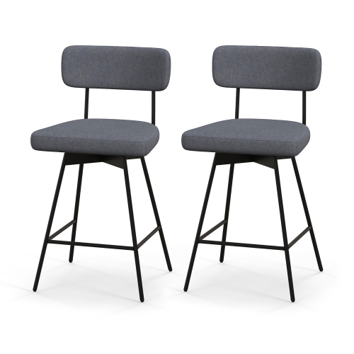 Gymax 2PCS Swivel Bar Stool 25'' Upholstered Bar Height Dining Chair w/ Footrest
