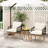 Gymax 3 Piece Patio Chair Set Wicker Chair & Side Table Set w/ Soft Cushions & Tempered Glass Tabletop