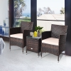 Gymax 3PCS Patio Outdoor Rattan Furniture Set w/ Cushioned Chairs Coffee Table