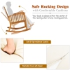 Gymax 3 Pieces Acacia Wood Rocking Bistro Set w/ Coffee Table and Cushions for Lawn