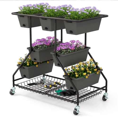Gymax 3-tier Vertical Raised Garden Bed w/ 7 Planter Boxes Drainage Holes Storage Shelf