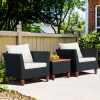 Gymax 3PCS Cushioned Patio Conversation Furniture Set w/ Wooden Table Top & Feet