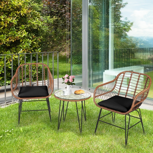 Gymax 3PCS Rattan Patio Conversation Set Bistro Chat Set w/ Cushions