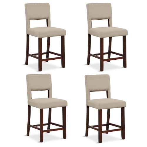 Gymax 4-Piece Linen Fabric/PVC Leather Counter Height Bar Stool Set w/ Back & Rubber Wood Legs