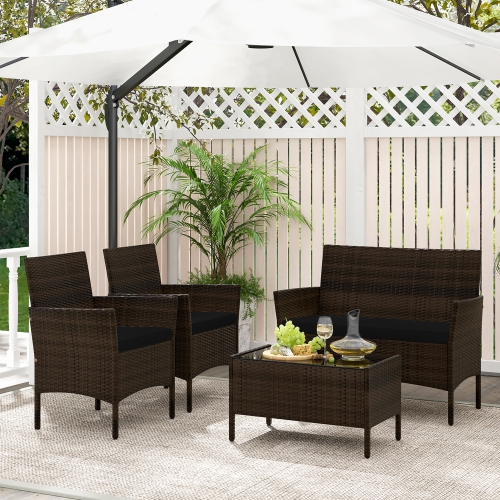 Gymax 4 Piece Patio Rattan Conversation Set Outdoor Wicker Furniture Set w/ Chair