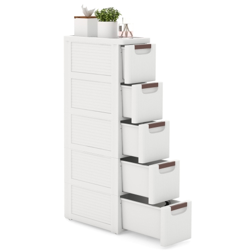 Gymax 5-Drawer Narrow Rolling Storage Cabinet w/ Pull Handles Built-in Wheels