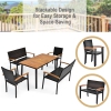 Gymax 5PCS Rattan Outdoor Dining Set Patio Furniture Set w/ Wooden Tabletop