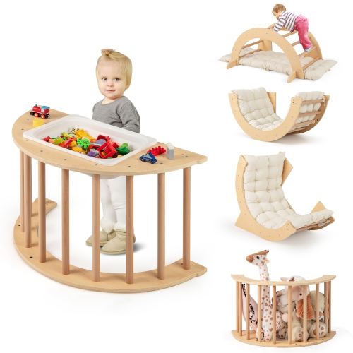 Gymax 6 in 1 Climbing Arch for Toddlers w/ Collapsible Storage Bin Removable Cushion