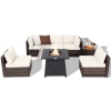 Gymax 7PCS Rattan Patio Sectional Furniture Set w/ 30'' Fire Pit Table & Cushion