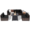 Gymax 7PCS Rattan Patio Sectional Furniture Set w/ 30'' Fire Pit Table & Cushion