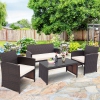Gymax 8PCS Patio Conversation Set Outdoor Rattan Furniture Set w/ White Cushions