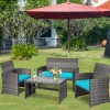 Gymax 8PCS Patio Outdoor Rattan Conversation Furniture Set w/ Turquoise Cushion