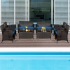 Gymax 8PCS Patio Rattan Conversation Furniture Set Outdoor w/ Peacock Blue Cushion