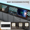 Gymax LED Bed Frame Twin/Full/Queen Size w/ Charging Station Upholstered Headboard 4 Drawers