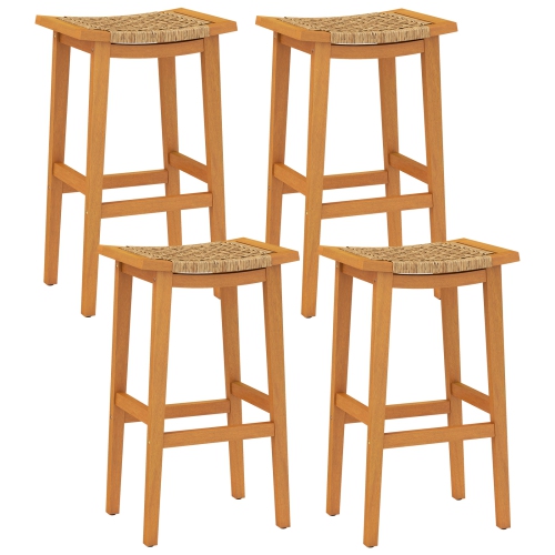 Gymax Outdoor Acacia Wood Bar Stools Set of 4 w/ PE Rattan Seats & Backrests