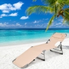Gymax Portable Beach Chaise Lounge Chair Folding Reclining Chair w/ Facing Hole Beige