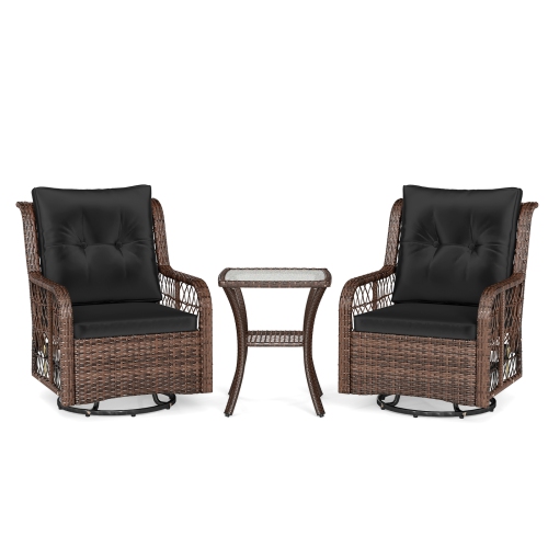 Gymax Set Of 3 Patio Furniture Set w/ 2-Tier Side Table & Cushions for Porch