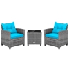 Gymax Set of 3 Rattan Furniture Bistro Set Cushioned Sofas Side Table Armrest Turquoise