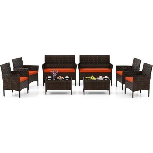 Gymax Set of 8 Furniture Set w/ Washable Cushions & Tempered Glass Coffee Table