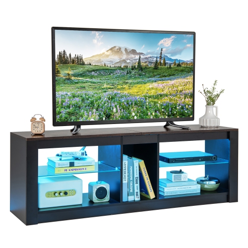 Gymax TV Stand w/ LED Light for TVs up to 65 inch w/ Adjustable Tempered Glass Shelves
