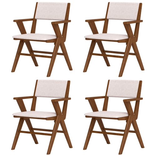 Gymax Wooden Dining Chair Set of 4 w/ Rubber Wood Frame Padded Seat & Back Armrests