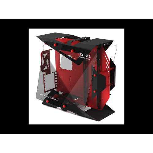 H.E. ZC-22 Mint Prism Tempered Glass Computer Case Support 360mm Radiator Support M-ATX Motherboard USB3.0 -Red & Black