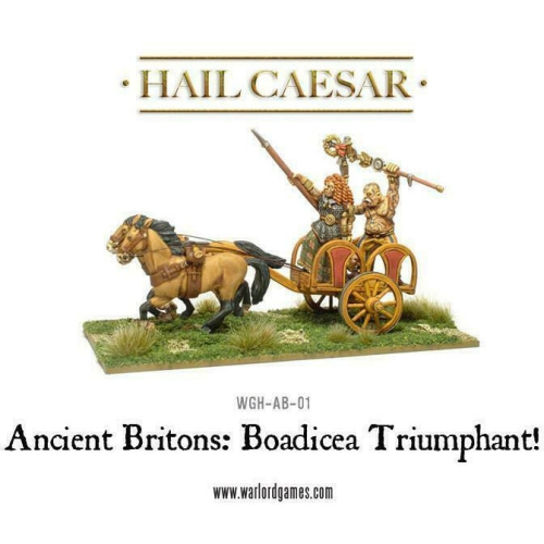 Hail Caesar Ancient Britons: Boadicea Triumphant!With the rumble of wooden wheels and a flash of scarlet tresses, Boadicea, Queen of the Iceni will soon be making her way onto battlefields at the head of your Celt army in all her haughty and defiant glory.Famed for her stubborn resistance against the invadi...