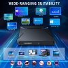 Our External DVD Drive is easy to use. Users can just simply pull out the USB cable and plug the drive into any USB port of electronic devices with supported systems, it will just play automatically. No extra power or drive is needed. Designed with a forced ejection hole, Don't worry about disc being stuck inside.