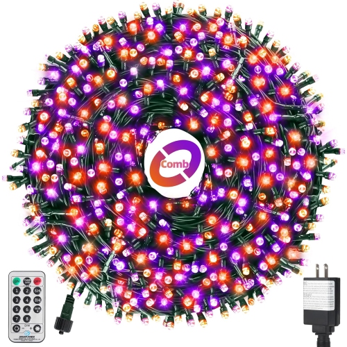 Halloween Decor Light String Lights 105FT 300 LED Fairy Lights END to END Plug in with 8 Modes Waterproof Outdoor Indoor Decoration for Party Garden Yard (Orange Purple Lights)