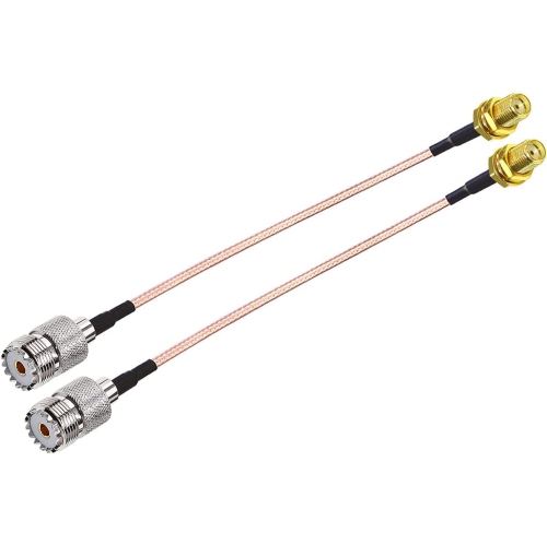 Package include:2 x SMA female to UHF female cables Commonly Used in RF Applications, Antennas, Wireless LAN Devices , Coaxial cable, Wi-Fi Radios External Antenna, 1000 Times Mating Life Time. Cable length: 6 inches; Cable type: Flexiable Coaxial Quality Low Loss RG316 Connector Material:Pure brass with Great connectivity.(Not Alloy)