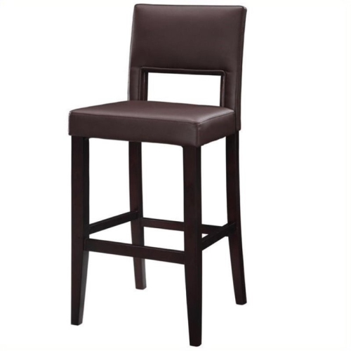 This modern contemporary 30" counter stool has clean, block-edged lines and a stylish metro appeal. Distinguished by its large panel back, squared seat and taper-flared legs, the is equally at ease in a busy kitchen or any more formal setting. A rich dark espresso wood and PVC vinyl upholstery finish makes the Counter Stool ideal for any area with dark decor accents.Features: Counter Stool features solid wood construction Counter St...