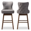 Featuring modern and contemporary design, the Hawthorne Collections upholstered swivel barstool will be a perfect addition to your kitchen or bar counter. Constructed of solid rubber wood in dark walnut finishing, the barstool will be a nice addition for your warm and cozy kitchen and dining room. Button-tufting cut out backrest, couples with silver nail heads trim around the seat back adds a touch of modern and a little of glamour to this functional barstool. Fully up...