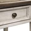 Enhance your space with the Heartland drawer end table. Crafted of rubberwood solids with cathedral white oak veneers, this piece features an antique white finish with a planked tobacco top, appealing wood framed drawer front, full extension fully stained interior drawer and a slat bottom shelf for additional storage, accented with antique brass knob hardware, anchored by square tapered legs. This classic end table would make a great accent piece to any traditional or ...