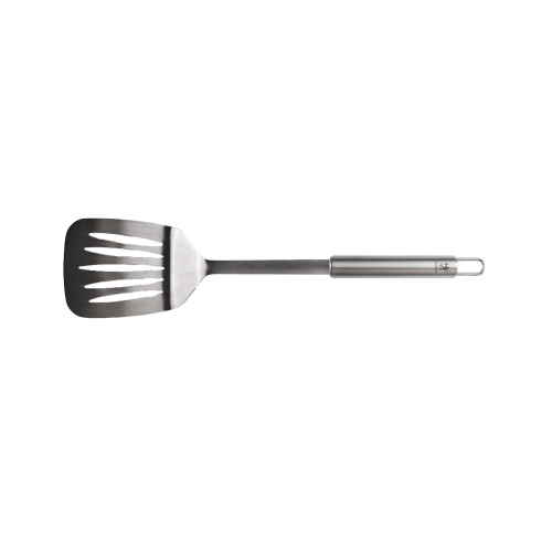 The HENCKELS Stainless Steel Slotted Turner combines the beauty of brushed 18/10 stainless steel with perfect, elegant functionality. Silicone is heat resistant to temperatures of 450F. Hanging loop for convenient storage. Perfect for gift giving or to upgrade existing tools. Dishwasher safe.
