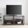 Striking in its simplicity, this open plan TV stand emphasizes clean lines and straightforward design. This three-tiered entertainment solution features open-framed sides that create an airy exposed look, while the lower shelf's finished back anchors the piece and creates a solid backdrop for your media collections. Finished in a warm wood tone, this stand is designed to blend seamlessly with your existing decor and color scheme.Features : Acco...