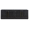 Combine functionality and classic transitional design with this modern TV stand. Its rich wood tone creates a warm neutral palette that will blend seamlessly into any color scheme, while its classic styling pairs perfectly with the existing design inspiration of your living room, den, or game room. This solid-backed stand features two large enclosed cabinets with sleek brass-finished hardware. Cable management cut-outs and adjustable inner shelves help keep your media ...