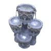 FEATURES: Made of durable and lightweight polyresin. Indoor/Outdoor use. Perfect for your home and garden. Colour: Grey. 3 Led lights included. pump, cord, and LED lights included. LED Light colour: Cool White. Pump flow rate: 1000 Litres/hour. water Capacity: 22 Liters. Assembly Required