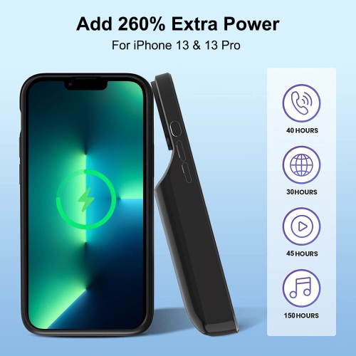 High Capacity [8000mAh] 15W Wireless Charging Battery Case for iPhone 13/13 Pro