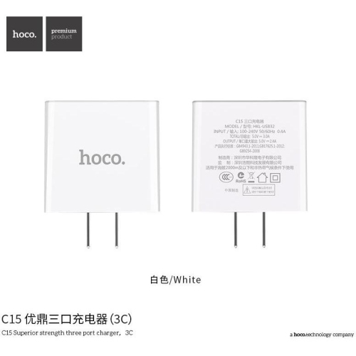 HOCO C15 Superior strength three port charger White