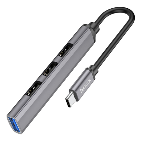 Hoco HB26 Metal Gray Mini Adapter 4-in-1 hub Type-C to USB 3.0 Female + USB 2.0*3 Female